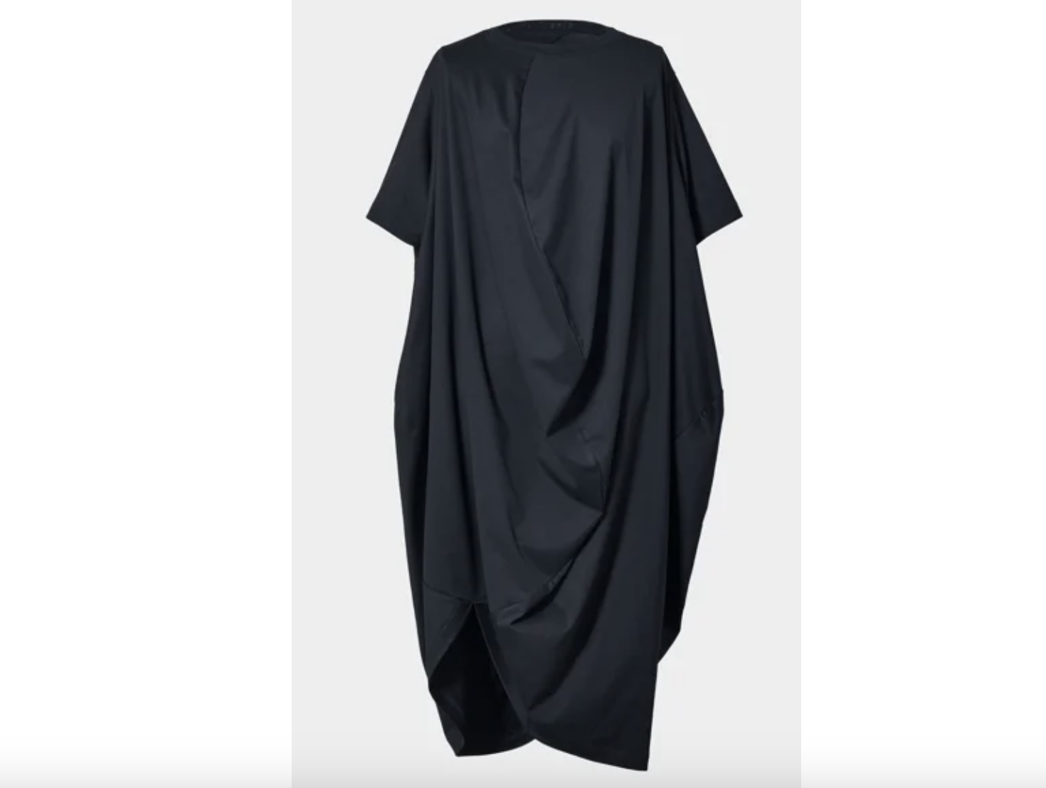 一方、Tシャツドレスは、前後どちらからでも着用できるユニークなデザインで、着る人や着方によってシルエットが変化。前後の概念を取り払い、より自由な着こなしを提案する、着る人に寄り添った一着となっている。