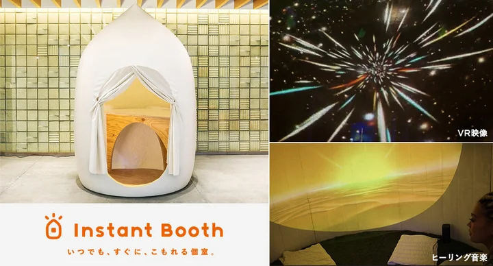 今回受賞した作品内で導入している「インスタントブース」は、断熱材で防音された簡易構造物。既存施設内に置くだけで手軽に設置でき、遮音性が高く、リラックスして内部に籠ることができる。