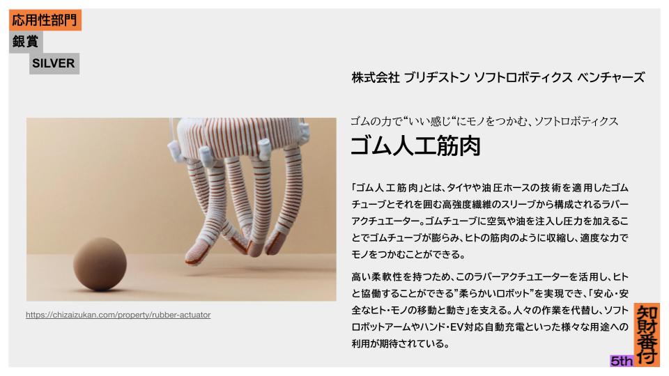 銀賞 ゴム人工筋肉/ブリヂストン ソフトロボティクス ベンチャーズ